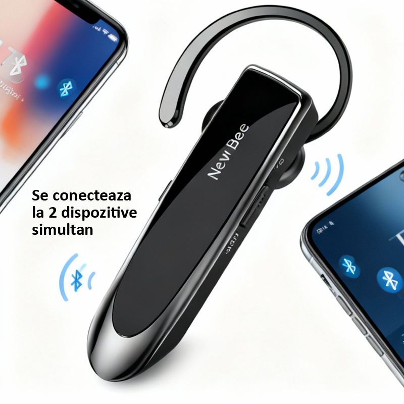 - Conecteaza casca la doua dispozitive in acelasi timp – ideala pentru cei care folosesc telefon personal + de serviciu.