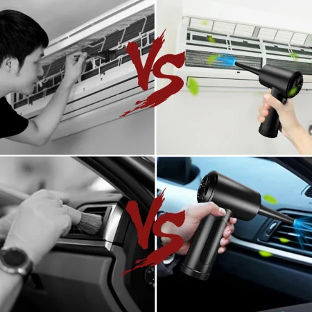Aspiratorul si suflanta 2 in 1, fara fir, indepartare praf este un dispozitiv compact si multifunctional, ideal pentru soferi si pasionatii de curatenie. Acest gadget combina puterea aspiratorului cu eficienta suflantei de aer, permitand indepartarea rapida a prafului si a murdariei din spatii greu accesibile. Designul fara fir ofera libertate de miscare si usureaza utilizarea in masina, acasa sau birou, fara a fi nevoie de prize sau cabluri lungi. Este solutia perfecta pentru intretinerea curata si rapida a spatiilor mici si sensibile.
